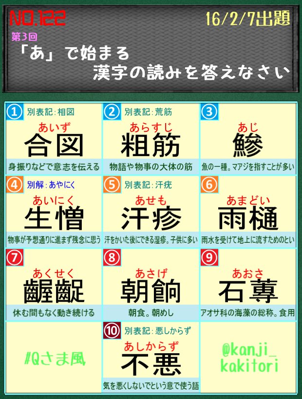 毎週更新 Qさま風漢字問題まとめ 自作クイズ 6ページ目 Togetter