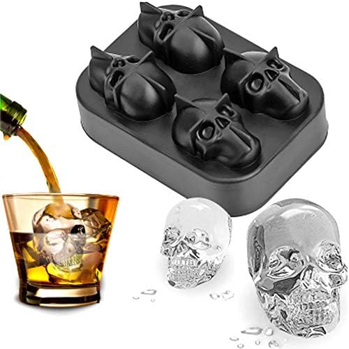ストッパー アイスキューブトレイ3dスカルシリコンモールド4キャビティdiyアイス こぼれにくい蓋付きのシリコンアイスモールド ドリンク ヘビー ベビーフード用のdiyアイスキューブトレイ ワイン お見舞い ウイスキー