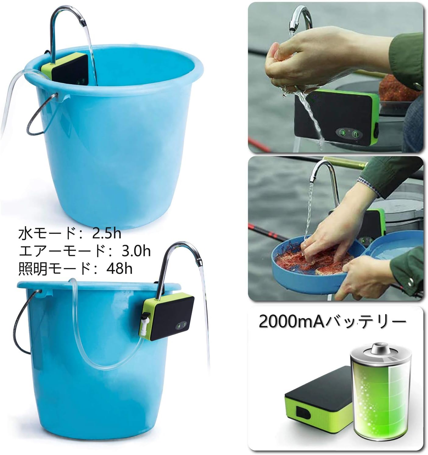 Amazon Co Jp Zenct ポンプ エアーポンプ 小型ウォーターポンプ 一体化 充電式 Ledランプ付き 3モード 水などのくみ上げ 排水に 釣り 水槽 活かし輸送などに Ct059 スポーツ アウトドア