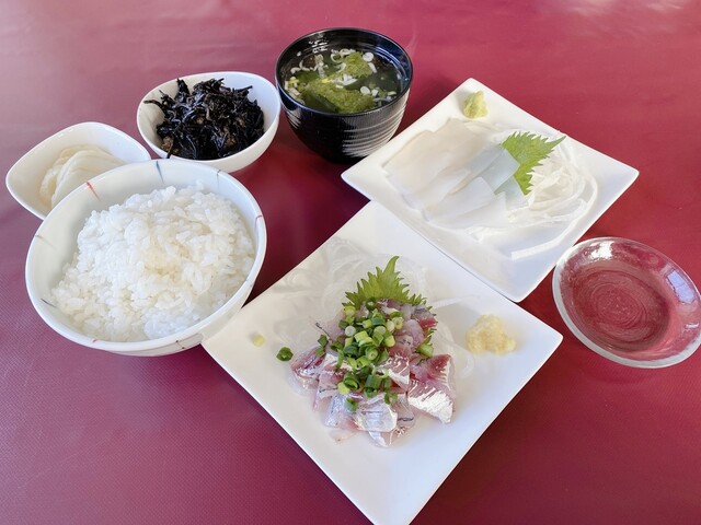 ばんばん膳 あおさ汁に変更 鯛塩から揚げ 地魚あら煮 干物 あじ Picture Of Izuchu Banban Shokudo Lusca Atami Tripadvisor